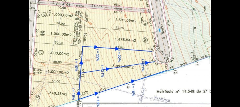 Àrea total: 315.242m2 com 126 lotes a partir de 1.000m2 sendo 92.549,94m2 de área verde.
