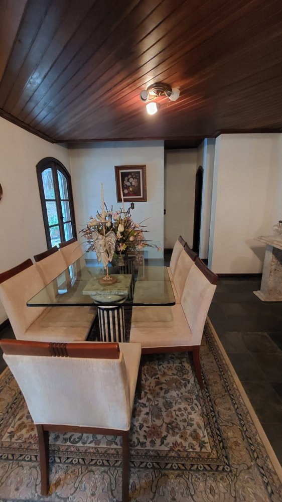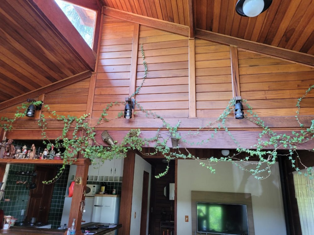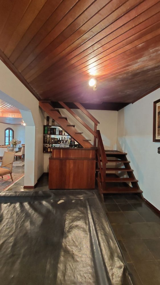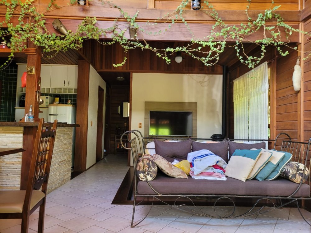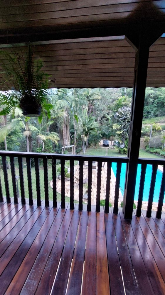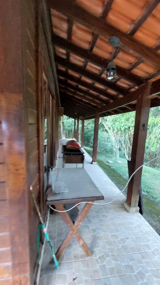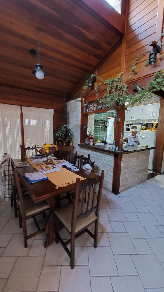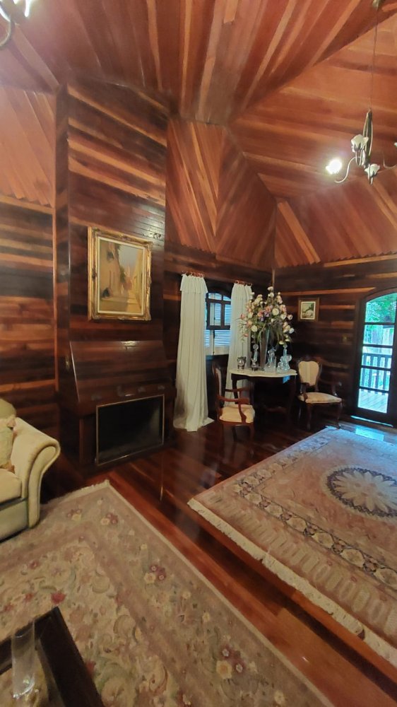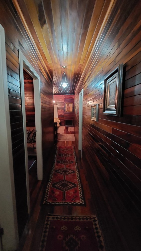 Pavimento Superior em madeira, completamente avarandado com 3 dormitórios sendo 1 suíte todos com armários, ampla sala íntima com lareira.