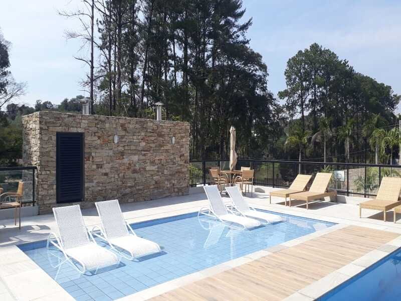 Sala intima/tv. Dois quartos avarandados com vista para o sol da manhã, amplo banheiro com duas cubas separadas da área íntima.Suíte master com ampla varanda, closet e vista livre para a Serra do Japi. Suíte com banheiro estilo americano (amplas janelas).