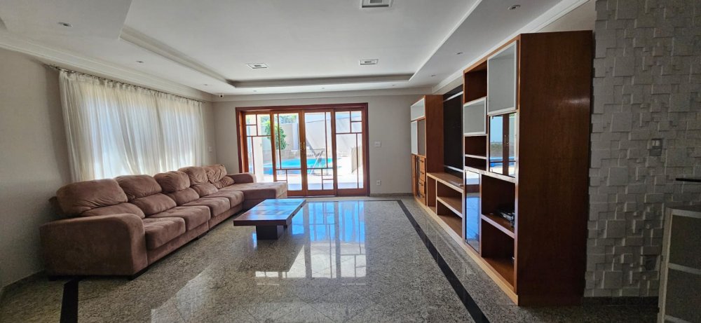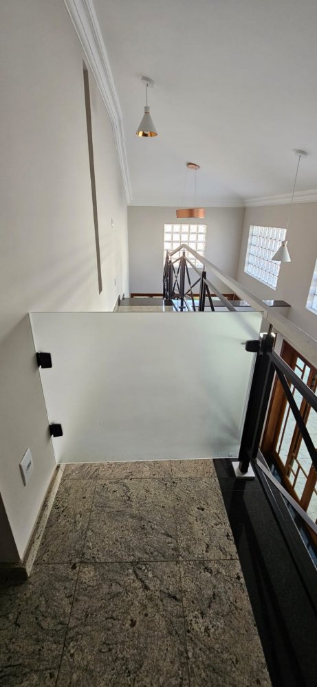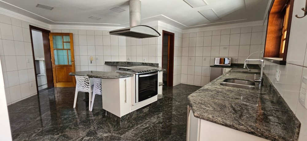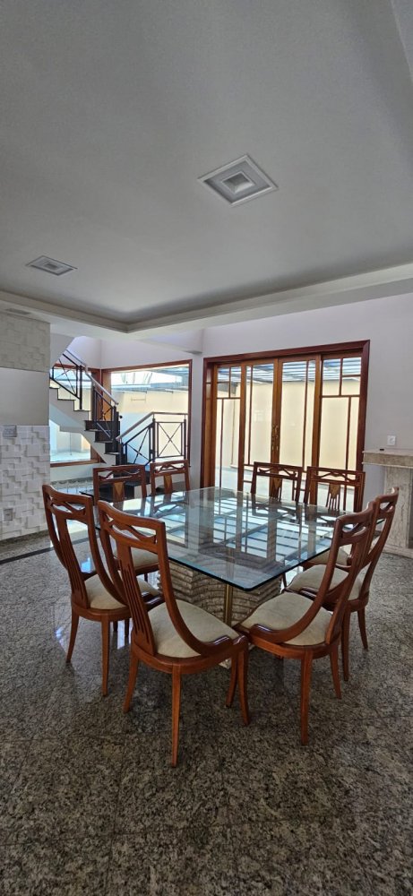 Sala de visita com amplo sofá, sala de jantar com mesa com 08 lugares e sala de tv com lareira, .Lavabo, Escritório, 4 wc completos.