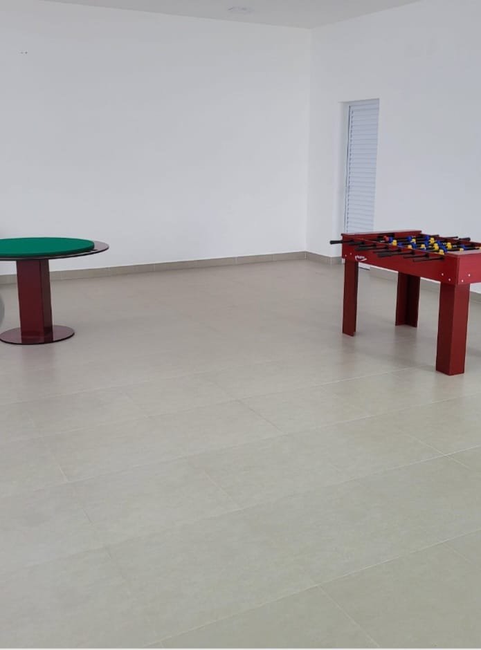 Área de lazer com salão de jogos, piscina e área gourmet.