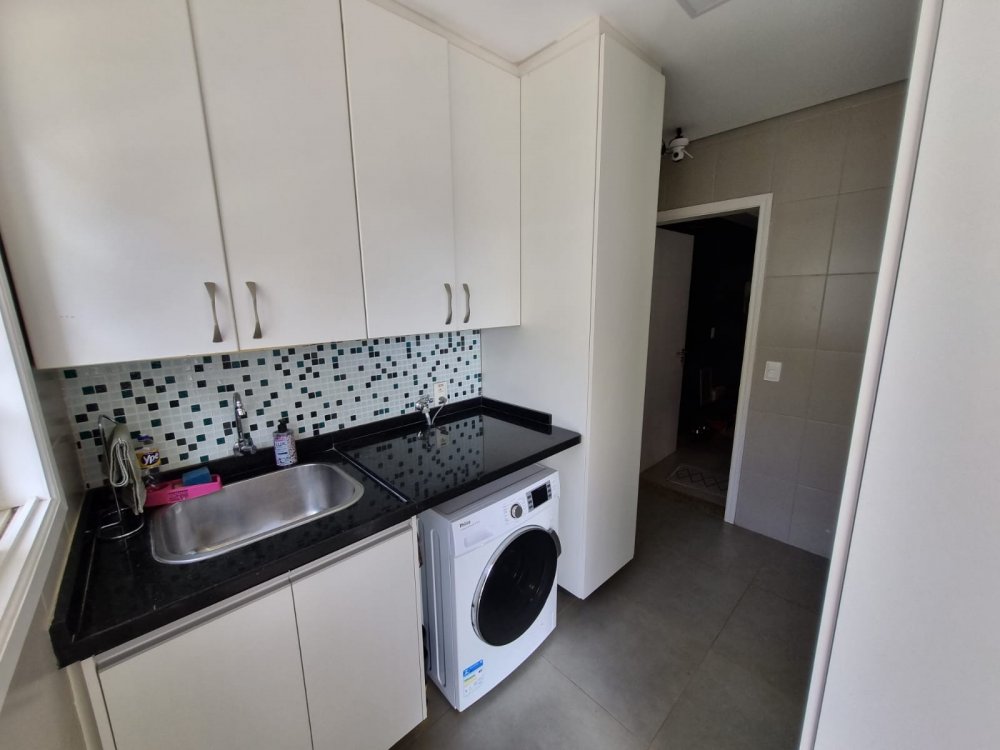 Lavanderia, cozinha com ilha para 6 pessoas. Cooktop a gás, forno eletrico, espaco para maquina de lavar louca, despensa com armario grande e espaco para freezer e lixo reciclavel. Banheiro nos fundos com chuveiro eletrico.