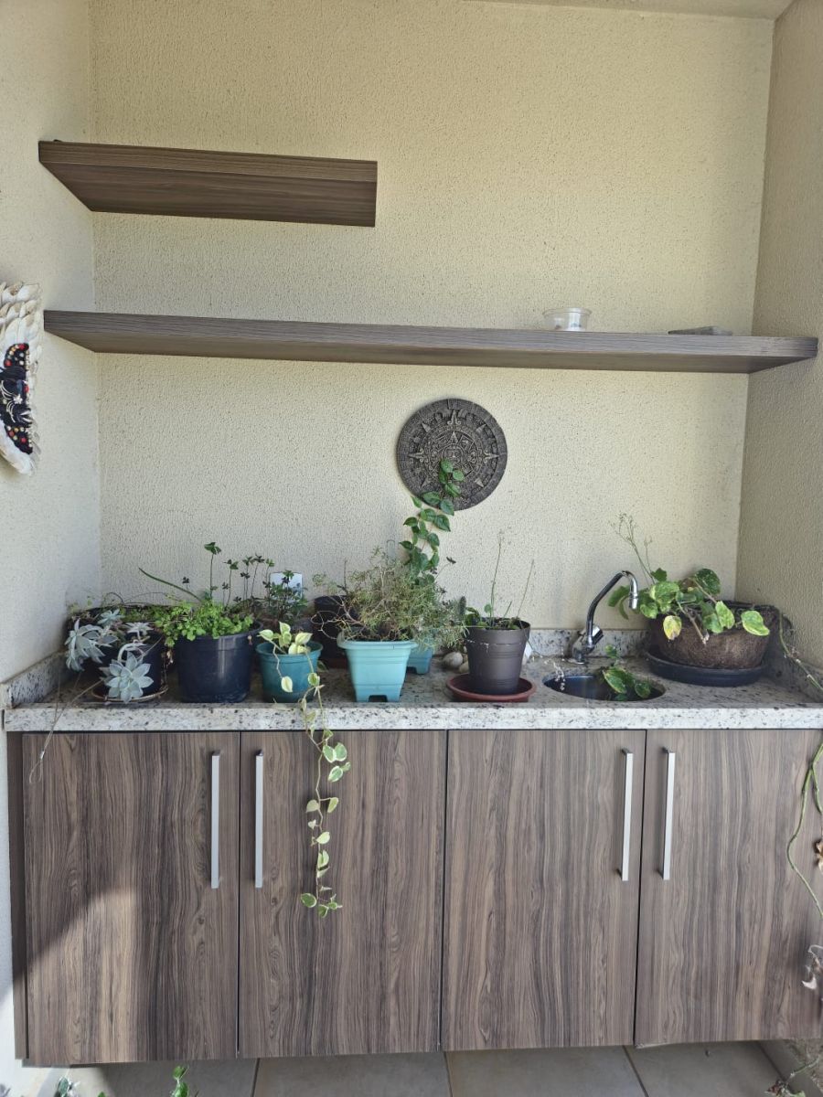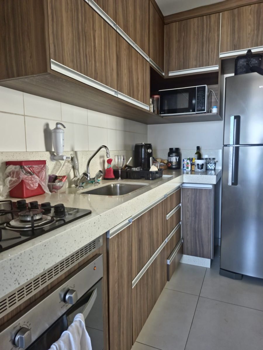 Sala e cozinha integradas a varanda gourmet. Varanda envidraçada com armários, pia e gabinete. Cozinha repleta de armários embutidos. Lavanderia com armário e porta de correr.