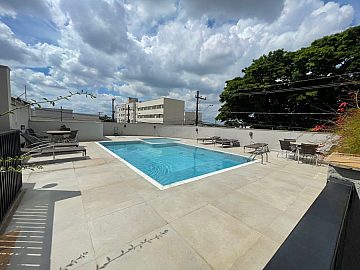 Condomínio com apenas 1 torre, com piscina, quadra poliesportiva, playground, brinquedoteca, churrasqueira, academia, salão de festas